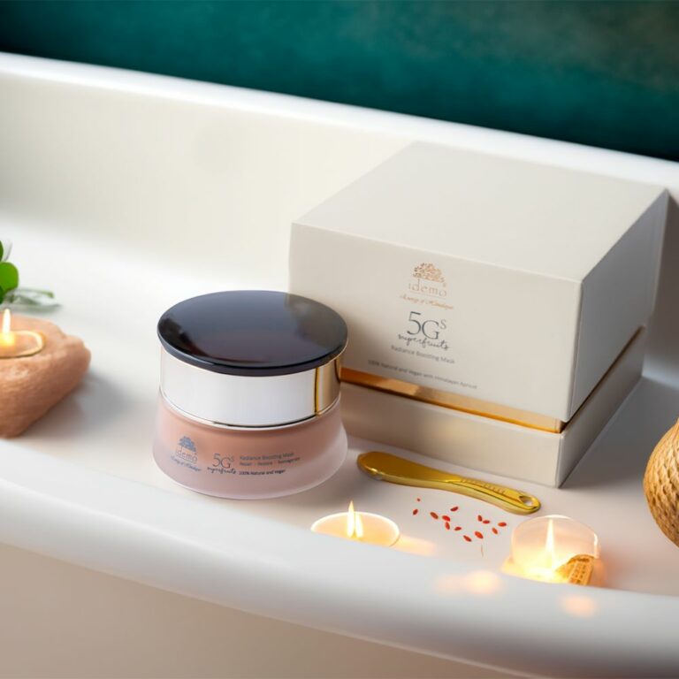 As the night settles into stillness, let the 5Gs Superfruits Radiance Boosting Mask cradle your skin in a cocoon of deep nourishment — a sumptuous, renewing veil that restores vitality with every quiet breath.